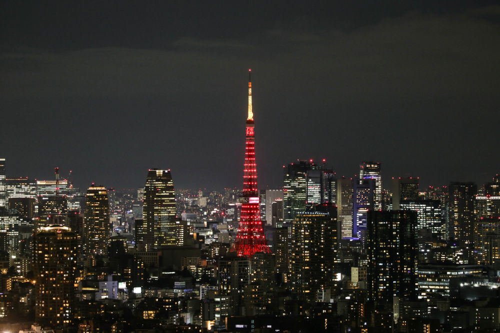 2月9日晚,日本東京的地標性建築東京塔點亮“中國紅”,慶祝中國農曆新年。新華社記者 嶽晨星 攝