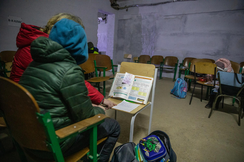 “六個月前,很多孩子聽到警笛聲時都驚慌失措,但我們努力使避難所成為温馨、舒適的地方。我們用鮮豔的色彩粉刷牆壁,在裏面放滿了書籍和藝術材料,並試圖讓孩子們覺得去防空洞像是要去外太空,比如到火星旅遊這樣的感覺。那裏有發電機和Wi-Fi,所以無論如何總是有電和網絡。我們為他們提供了儲物櫃,他們在那裏放了一個應急包,裏面有水和一些最喜歡的零食。有時頑皮的孩子會偷偷溜到避難所,在不該吃的時候吃這些應急零食!”