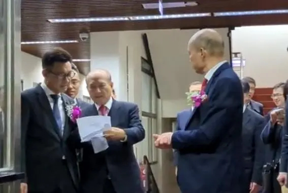 韓國瑜(右)與江啓臣(左)於2月1日晚拜訪王金平(中)(圖片來源:台媒視頻截圖)
