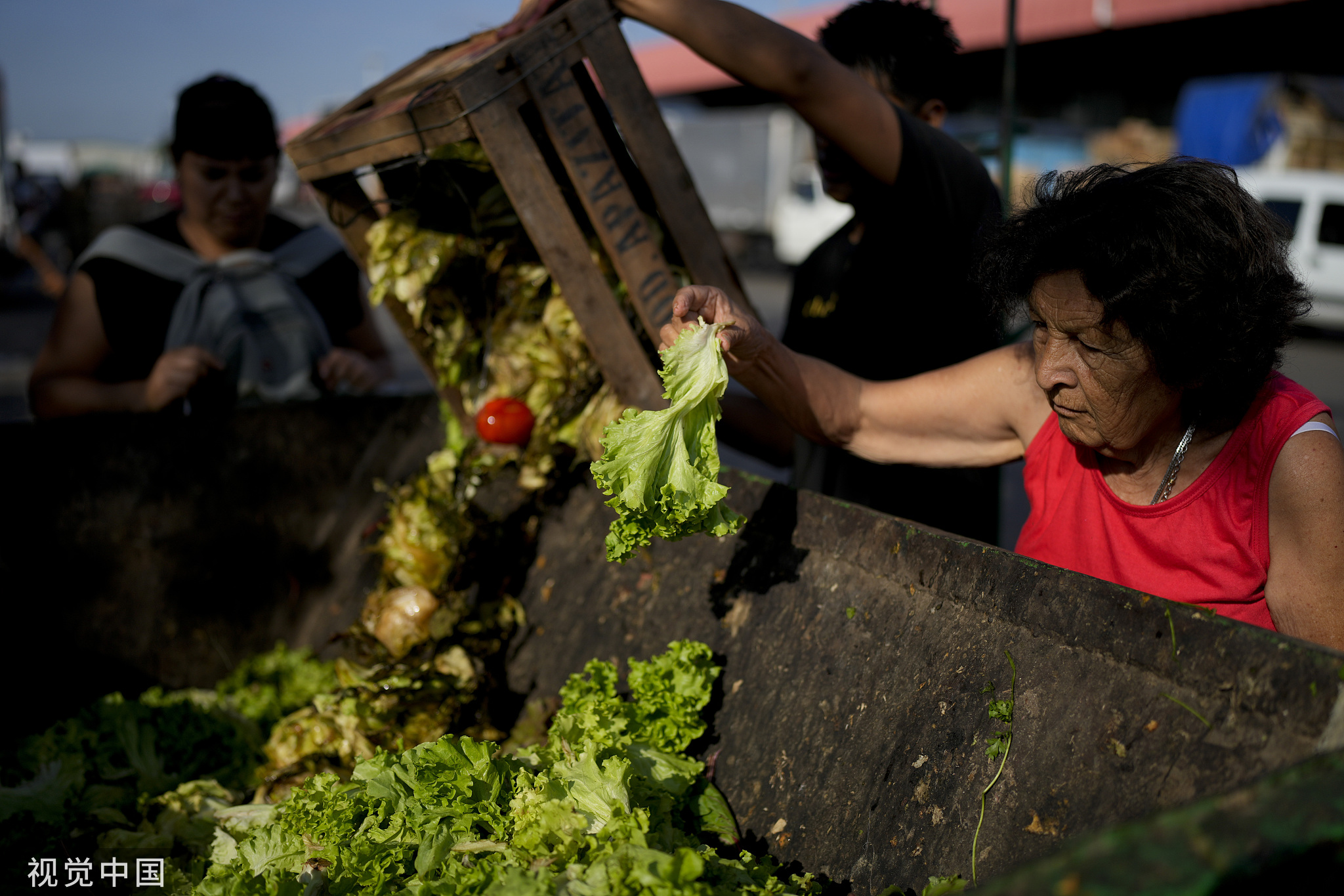 當地時間1月10日,阿根廷布宜諾斯艾利斯,民眾撿拾被丟棄的蔬菜。 /視覺中國