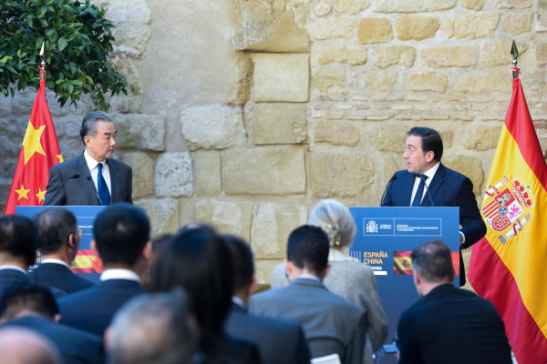 當地時間2024年2月18日,中共中央政治局委員、外交部長王毅在科爾多瓦同西班牙外交大臣阿爾瓦雷斯共同會見記者時表示,中方視西班牙為歐盟中值得信賴的好夥伴,願同西班牙一道,打造具有戰略定力的雙邊關係,為兩國發展振興提供新助力,為中歐關係注入新動能。王毅介紹了雙方達成的廣泛共識。