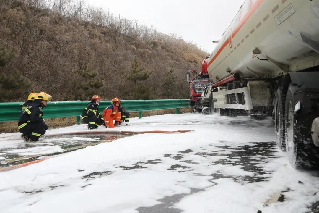 高速結冰引發6車連撞32噸汽油泄漏 消防緊急救援