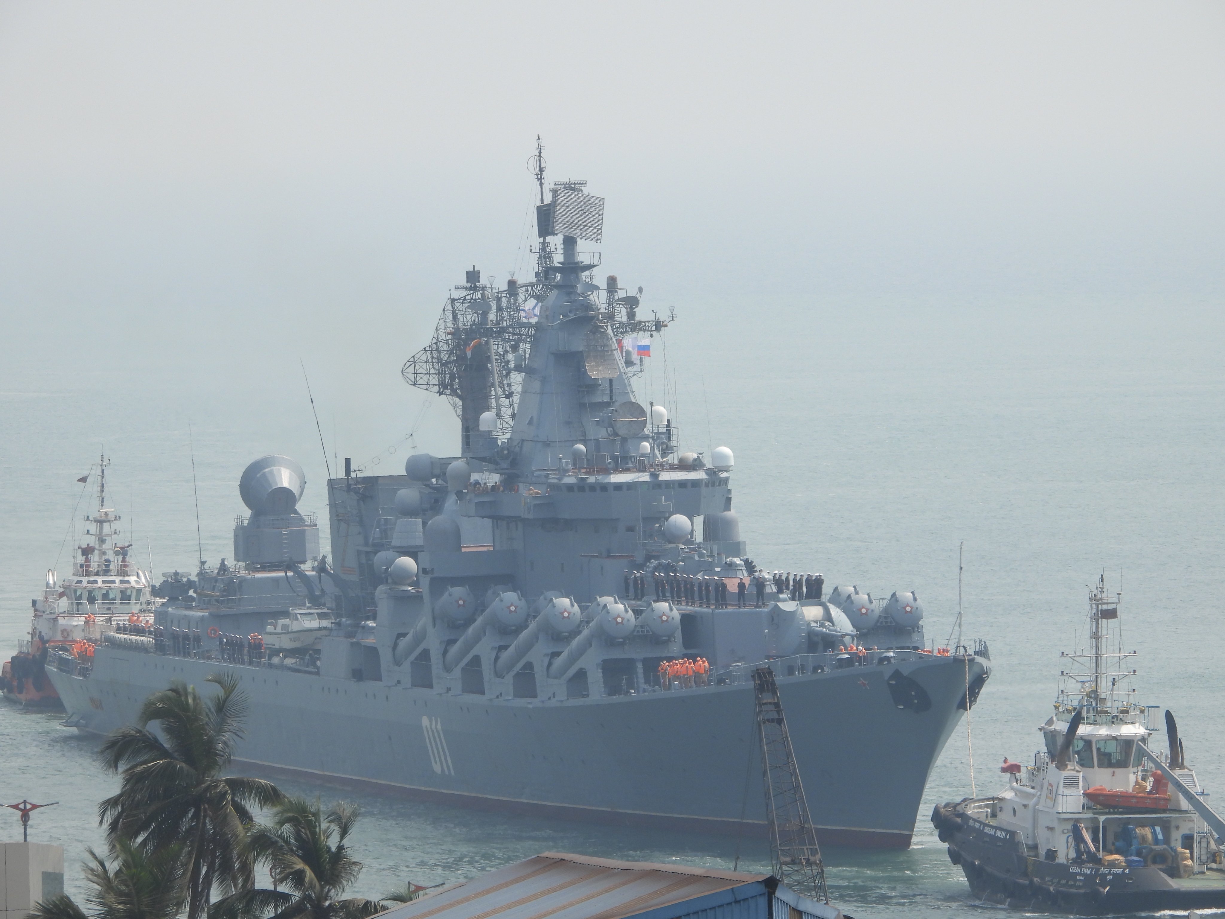 俄海軍太平洋艦隊1164型導彈巡洋艦“瓦良格”號2月19日抵達印度維沙卡帕特南