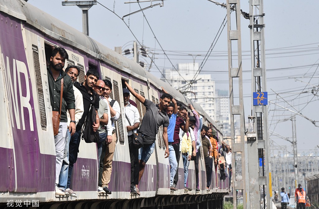 當地時間2023年10月27日,印度孟買,為修建連接Khar路和Goregaon站的6號線,幾列火車被取消,安德里火車站擠滿了人。(圖源:視覺中國)