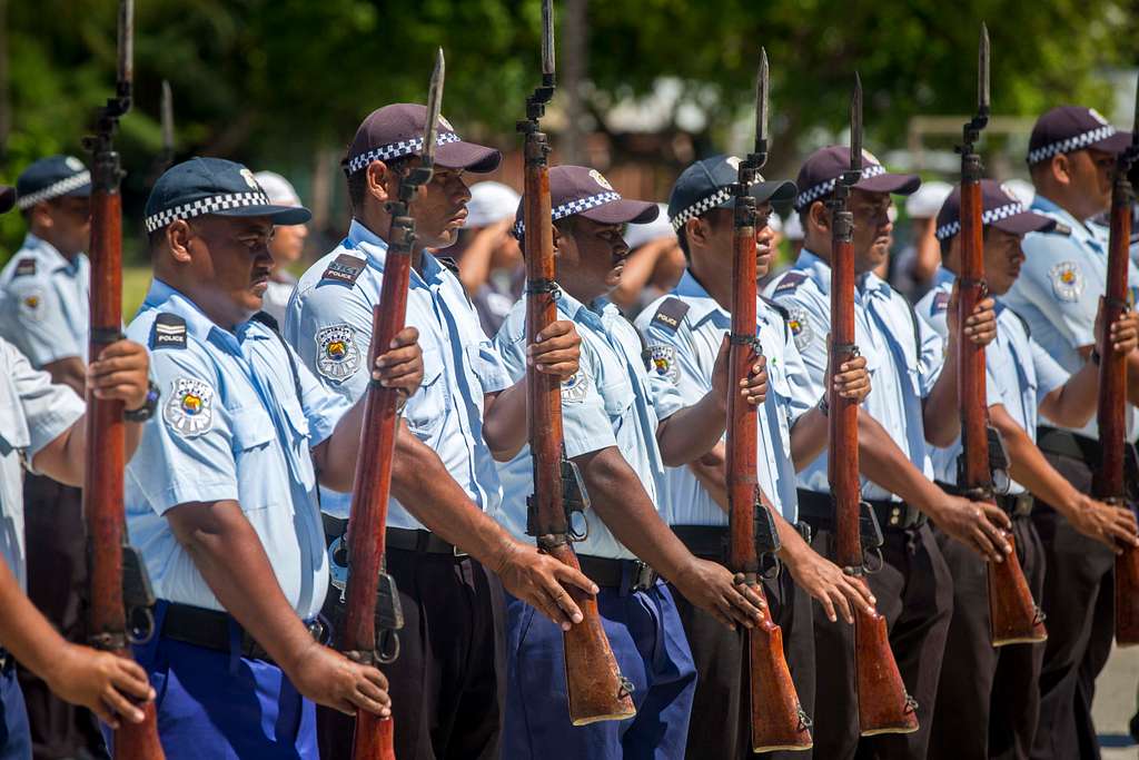 2017年,基里巴斯國家警察部隊為獨立日遊行進行彩排 圖片來源:picryl網站