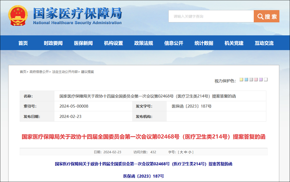 國家醫療保障局關於政協十四屆全國委員會第一次會議第02468號(醫療衞生類214號)提案答覆的函