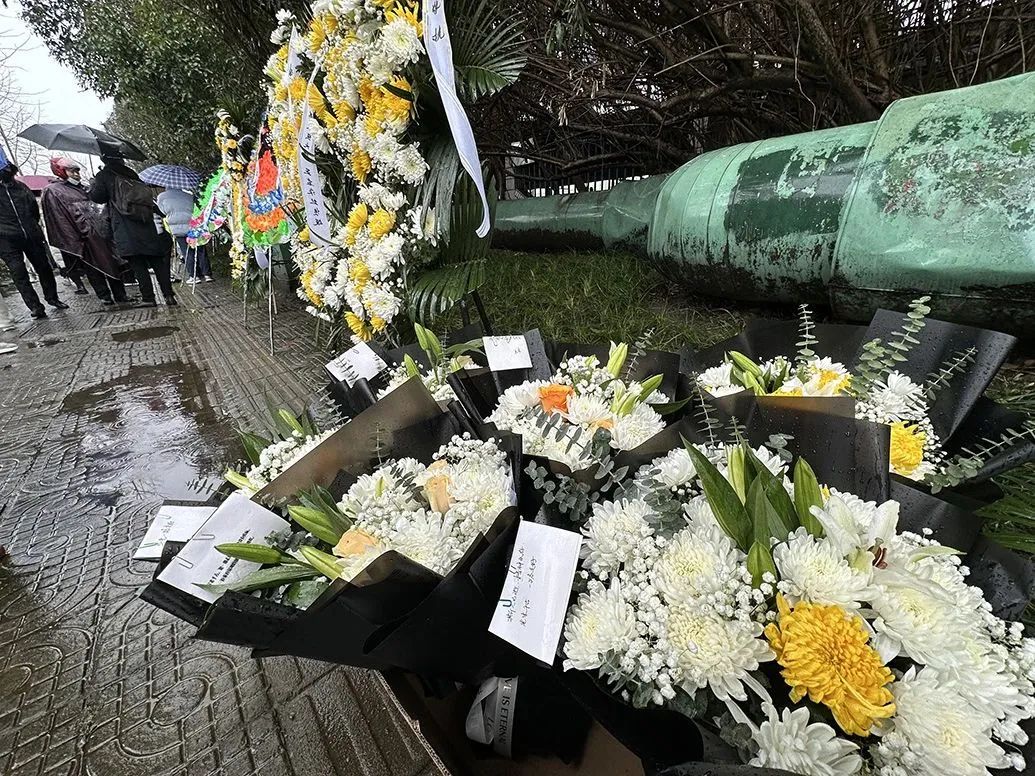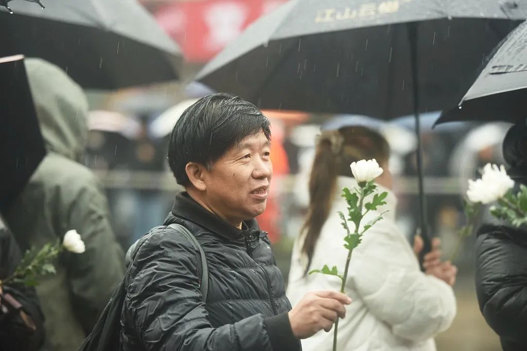 儘管細雨綿綿,但仍有不少市民自發排起長隊前來悼念。