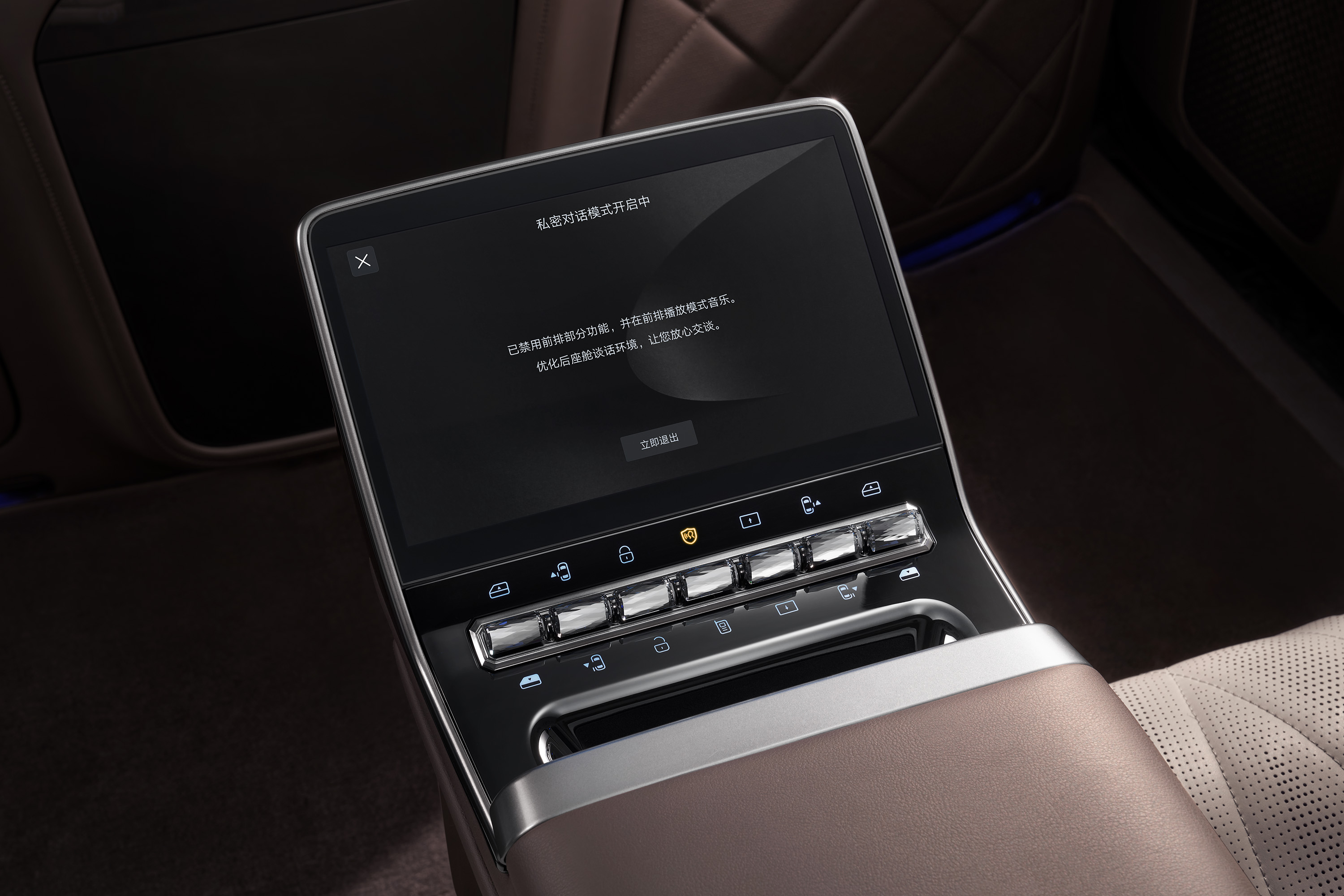 後排乘客也可通過中央扶手屏一鍵啓動 BOSS TALK,實現前後排雙向通話。