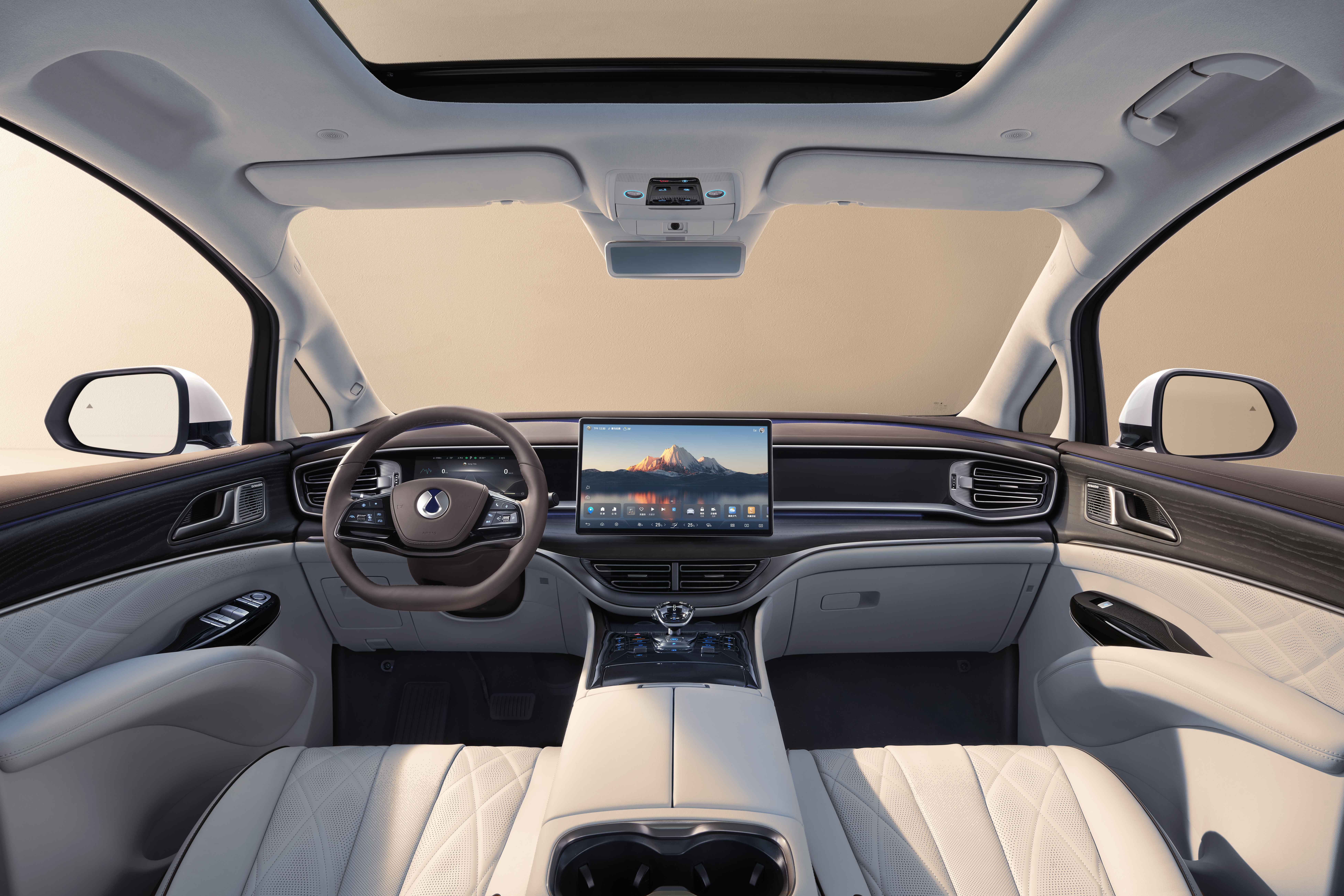 在車內的氛圍感上,D9 氛圍燈採用隱藏式光幕布置,總長達 12 米——包含頂棚,中控台、前中後三排門板。氛圍燈可與音樂、空調温度、主動安全系統、一鍵模式等深度融合,增強智能交互體驗。