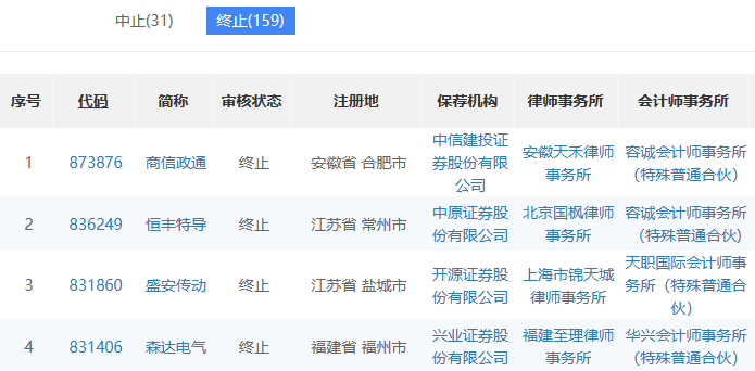 深交所方面則是部分終止IPO企業頗為吸引眼球。