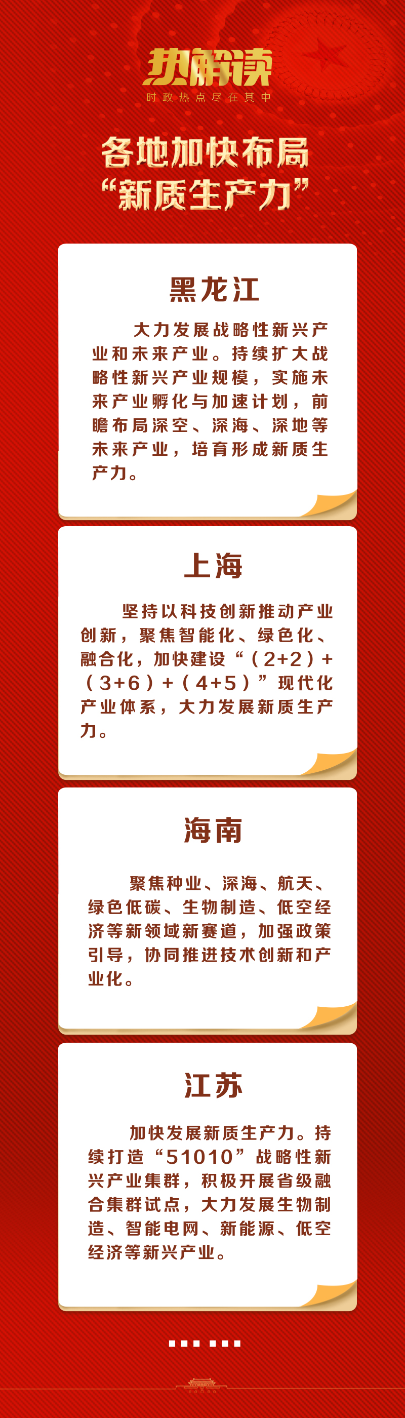加快發展新質生產力已成為2024年推進經濟社會高質量發展的主旋律。各地搶抓機遇,紛紛佈局。在各省區市2024年政府工作報告中,多地將加快培育新質生產力列為重點工作任務。