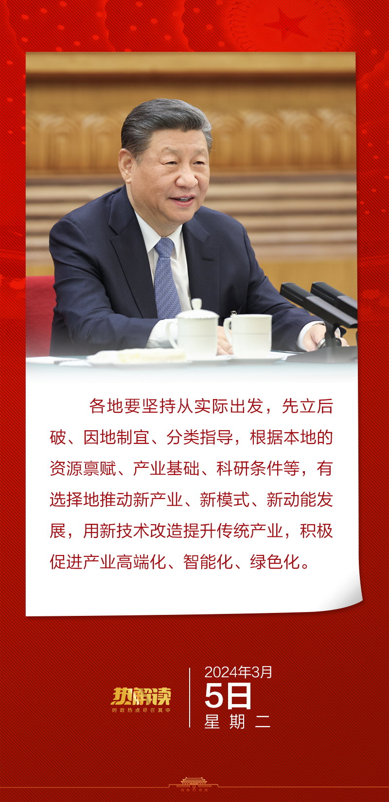 “新質生產力”是總書記談到的重要關鍵詞。總書記指出,“各地要堅持從實際出發,先立後破、因地制宜、分類指導”,“積極促進產業高端化、智能化、綠色化”。
