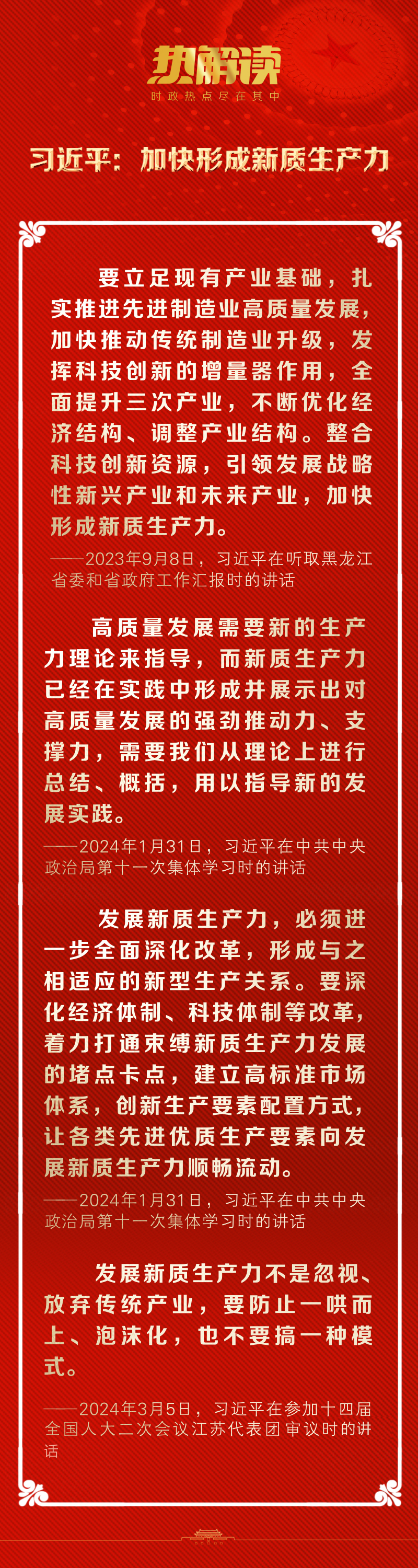 從2023年底召開的中央經濟工作會議要求發展新質生產力,到今年中央政治局首次集體學習時聚焦“新質生產力”,再到今年政府工作報告將加快發展新質生產力列為2024年十大工作任務之首,一系列重要安排部署釋放出鮮明信號,即發展新質生產力重要且迫切。