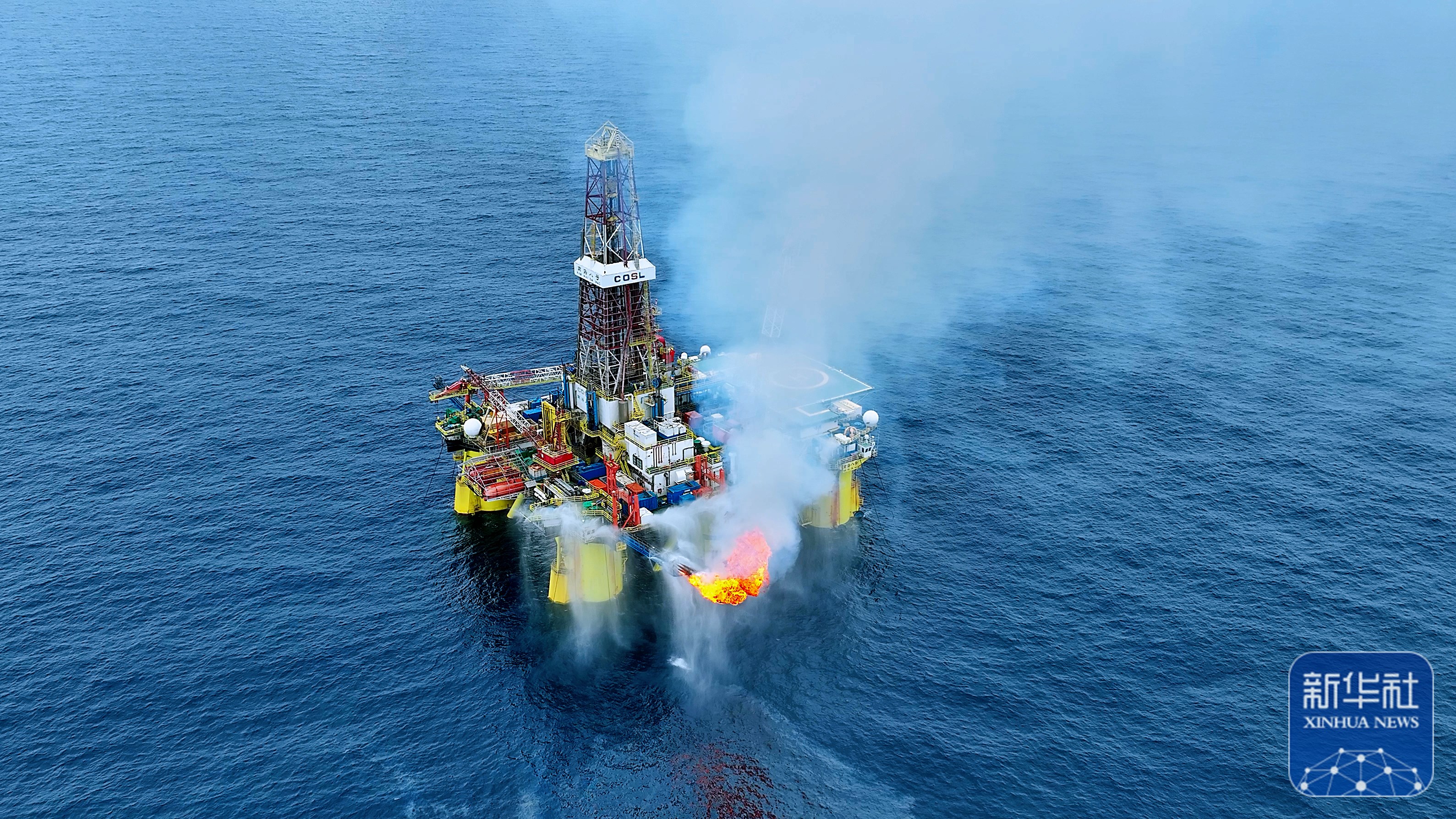 “南海八號”鑽井平台在開平南油田探井進行產量測試(2023年4月30日攝),資料圖自新華社