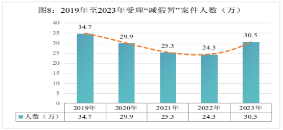 2.強化“減假暫”執行監督。推動制發“兩高兩部”《關於依法推進假釋制度適用的指導意見》和“兩高三部一委”《關於進一步規範暫予監外執行工作的意見》,聯合最高法、司法部開展專項檢查,督導落實。首次以假釋監督為主題制發第四十九批指導性案例,為監督辦案提供參考。加大聽證適用,最高檢直接組織相關案件檢察聽證3件,以上率下推動“減假暫”依法規範適用。全國檢察機關辦理“減假暫”案件中,提出書面糾正25517人,呈明顯上升趨勢。對檢察機關提出的書面糾正意見,相關單位採納率98.7%。罪犯鄒某某假釋監督一案,檢察機關準確把握假釋罪犯的服刑期限條件,注重通過個案辦理,推動司法行政機關調整不符合法律規定和立法原意的相關規定,保障法律統一正確實施。