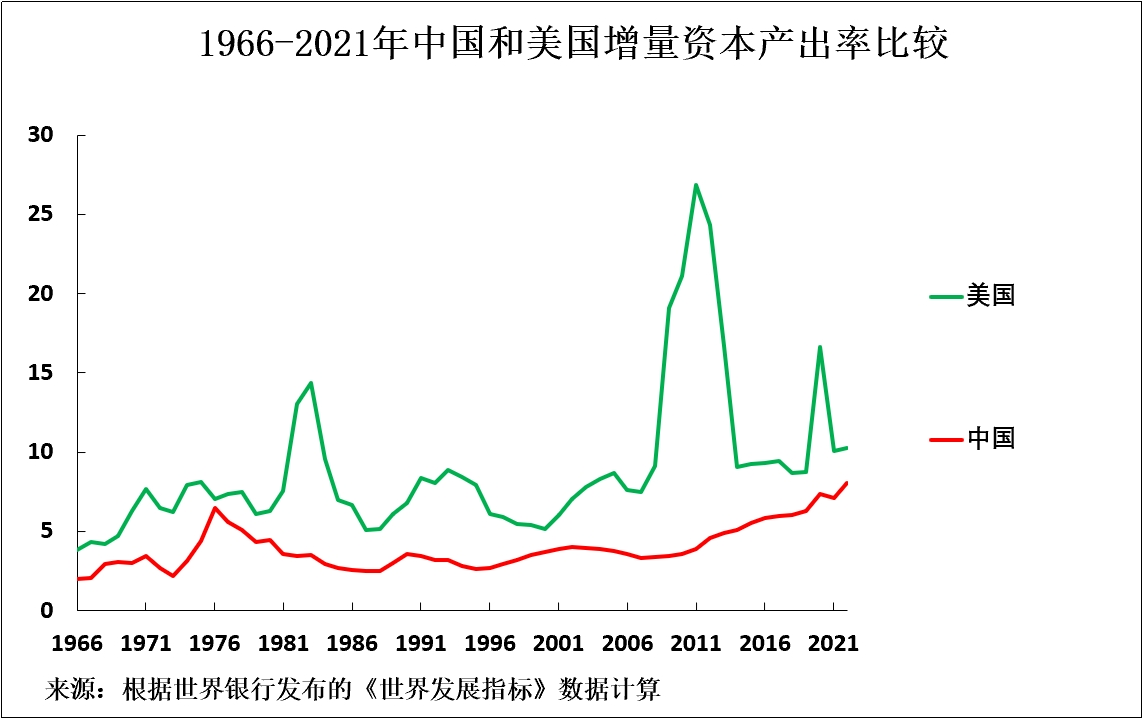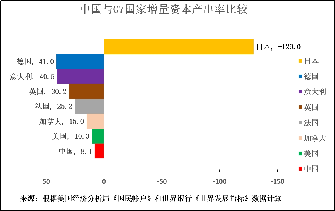 中國的投資在促進GDP增長方面的效率,已經高於包括所有G7國家在內的世界前20大經濟體中的19個經濟體。如果中國的ICOR必須變為6.7,其投資在促進GDP增長方面的效率將比美國高33%,比英國高78%。如果中國的ICOR不得不變為5.8,其投資在促進GDP增長方面的效率應比美國高40%,比英國高81%。在中國的投資在促進GDP增長方面的效率已經比美國高出20%,比英國高出74%時,關於中國投資效率低下的説法還值得相信嗎?