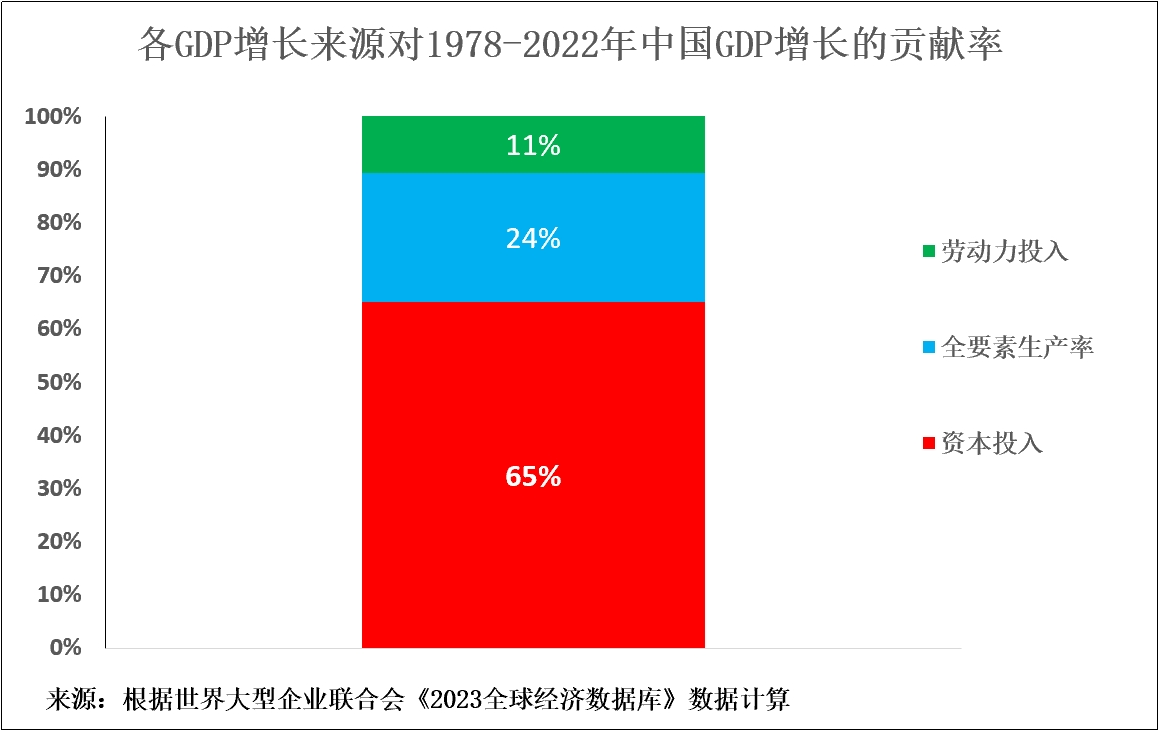 根據高盛的報告計算,中國GDP年均增速將下降2.6%——從2013—2022年的6.0%降至2023—2032年的3.4%。但是造成這種情況的唯一原因是“受到了資本投資對中國GDP增長的貢獻從4.8%下降至2.4%的壓倒性影響。7”高盛報告預測,由於92%的GDP增長下降源自資本投資下降,僅8%的GDP增長下降或者0.2%的GDP增長源自投資下降以外的因素。高盛表示,資本投資對中國GDP增長的貢獻之所以下降,是因為:“投資佔中國GDP比重預計將從2022年的42%降至2032年的35%。”8