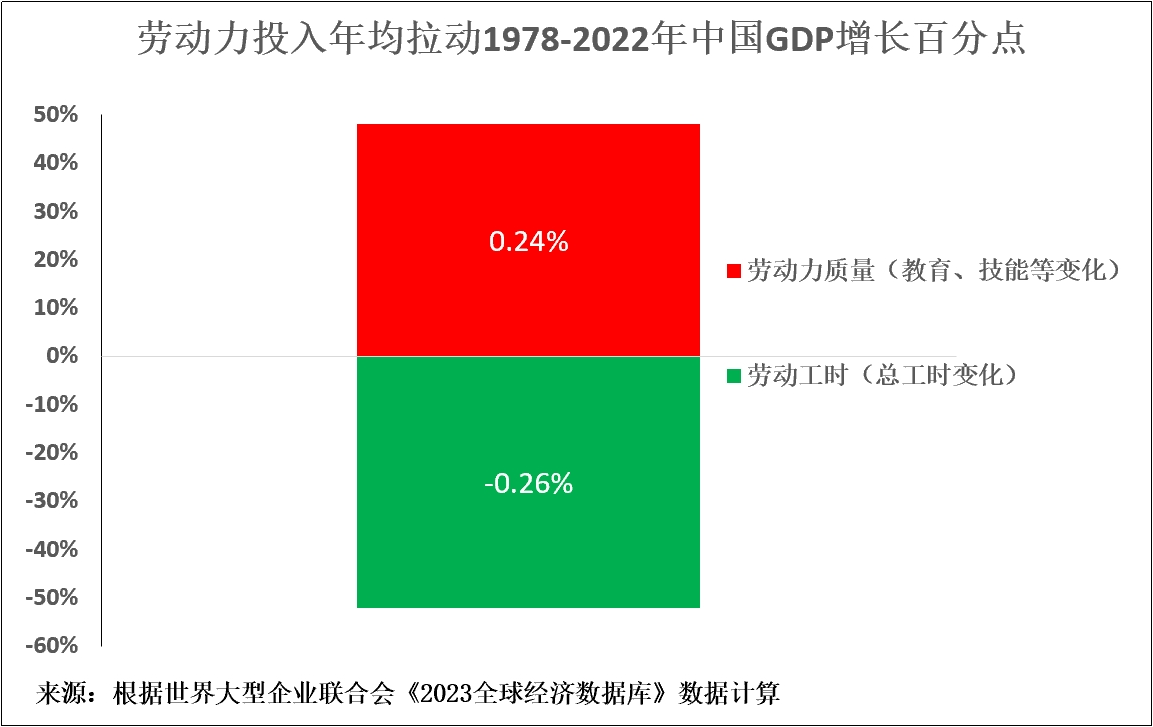 接下來,我們從基本參數轉向更精確的核算,其中不僅需要分析人口變化(用專業術語來説是勞動工時)導致的總工時/小時下降,而且需要分析教育、培訓等(用專業術語來説是勞動力質量)導致的勞動力價值提升。