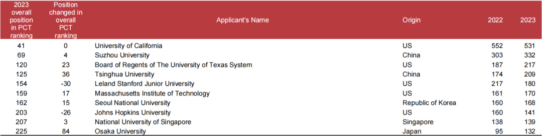 2023年國際專利申請量前十的教育機構 /世界知識產權組織