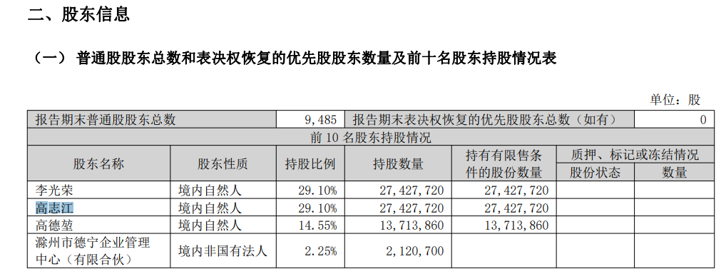 截至2023年9月底,高志江直接持有超越科技股份2742.77萬股,佔公司總股本的29.10%。