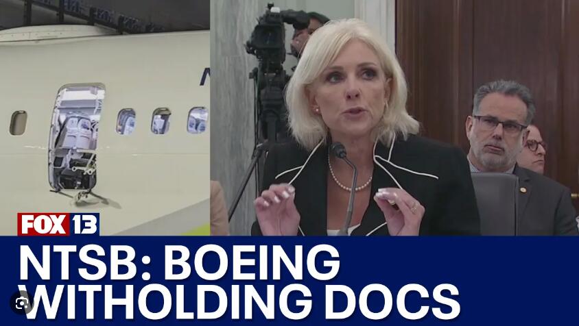 NTSB主席在隨後的媒體採訪中表示:“我們向波音要求提供安裝這門塞的工人名字,波音表示不知道;我們向波音要求提供這架飛機當天當班工人名單,波音表示無法提供;我們退而求其次要求波音給出負責這一班工人的管理人員名字,波音還是不提供。甚至我們要求波音給出是誰在2023年9月發現門的鉚釘有問題(因為鉚釘有問題所以門打開維修,並在維修好安裝時沒擰上螺絲)時波音依然拒絕提供。”(作者注:這一問題是通過波音的質量管理系統進行上報的,系統內肯定有上報人員名字)“一直到參議院聽證會開完幾小時後,波音才提供給我們。”
