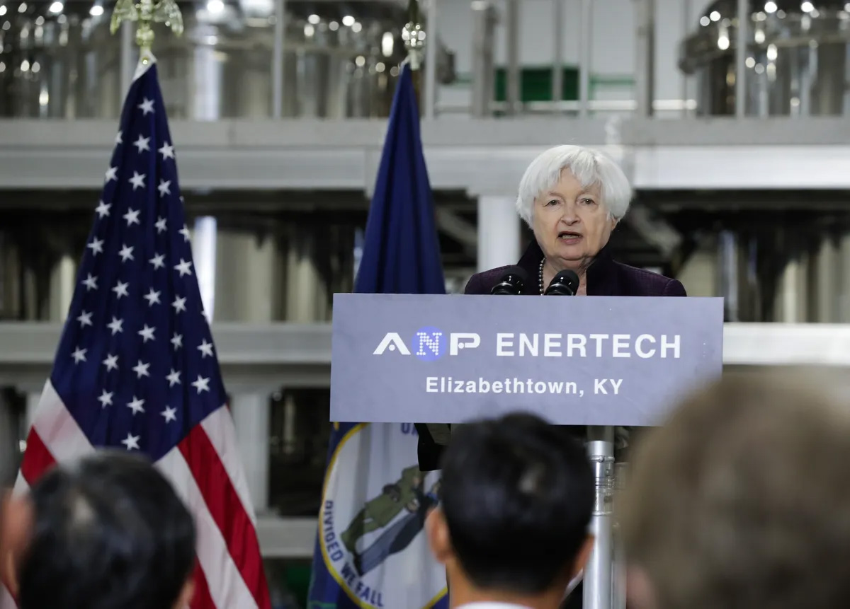 耶倫在肯塔基州一家新電池材料工廠發表講話 圖自美媒