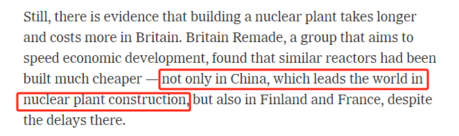 連一貫對中國基建持負面態度的《紐約時報》,也在相關文章裏承認,中國在核電站建設方面處於世界領先地位。