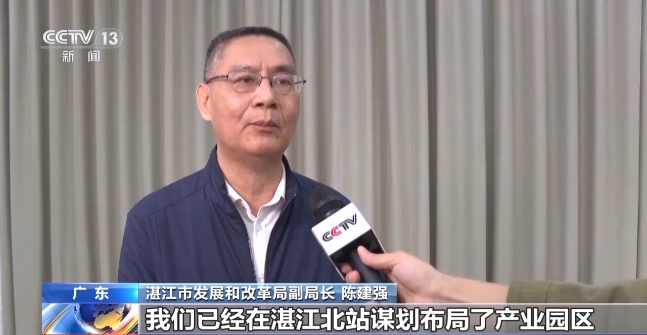 湛江市發展和改革局副局長 陳建強:我們已經在湛江北站規劃佈局了產業園區,加強與粵港澳大灣區的產業聯動,承接灣區產業的溢出效應,特別是重點圍繞總部經濟、科創中心、旅遊消費等領域,引入創新能力強、發展前景好、投資強度大的項目。