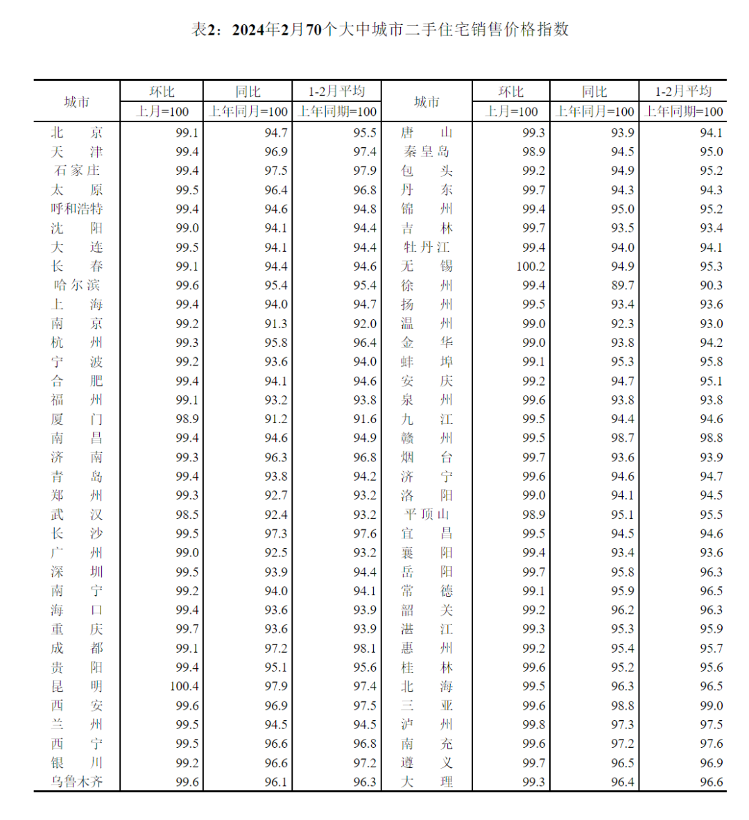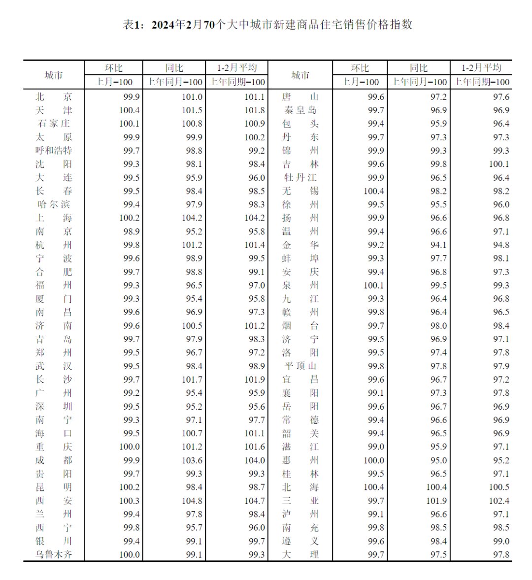 3月15日,國家統計局網站公佈2024年2月份70個大中城市商品住宅銷售價格變動情況,國家統計局城市司統計師王中華解讀。
