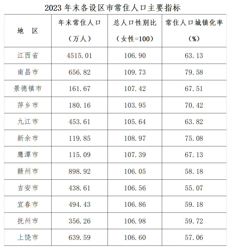 3月15日,江西省統計局發佈了該省2023年常住人口主要數據公報。