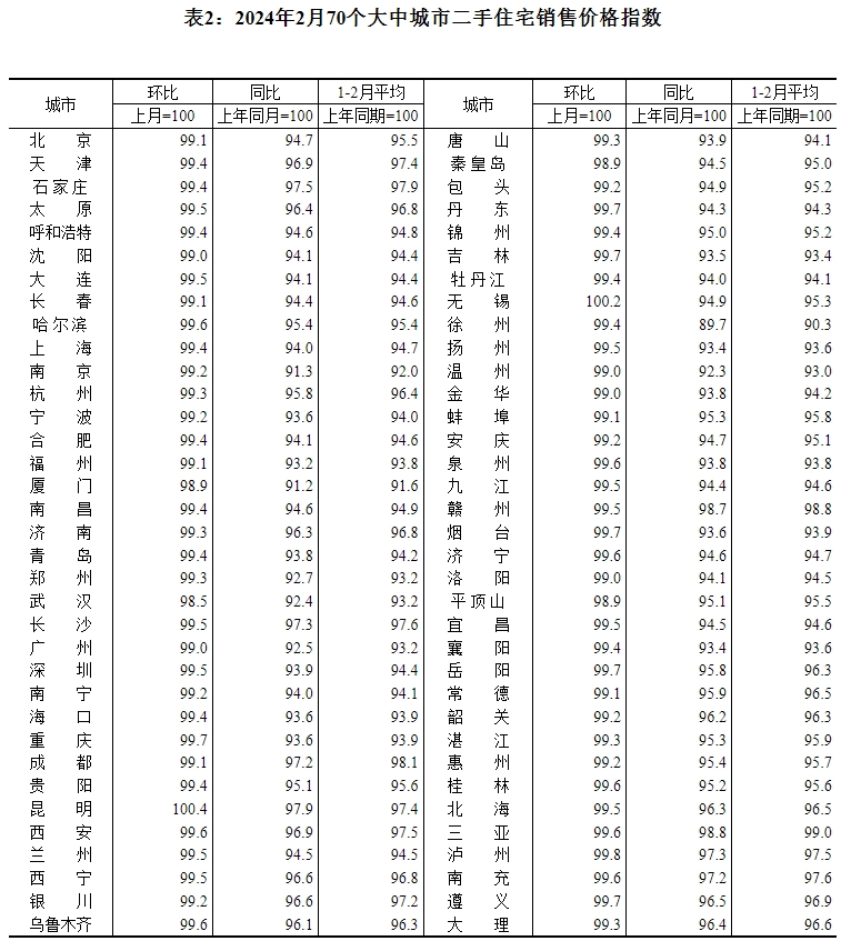 整體來看,2月份,70個城市二手住宅價格指數環比下跌0.62%,連續10個月環比下跌,跌幅比1月收窄0.06個百分點。