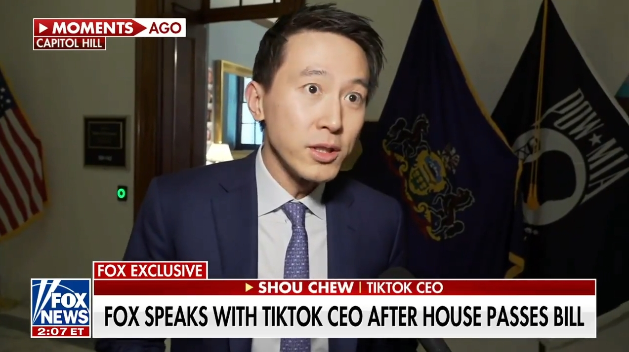 (觀察者網訊)綜合美國合眾國際社(UPI)、福克斯新聞等14日報道,欲“生吞活剝”TikTok,美國國會眾議院僅用一週火速通過涉TikTok法案,TikTok首席執行官周受資仍在做“最後努力”,試圖遊説參議員們否決法案。