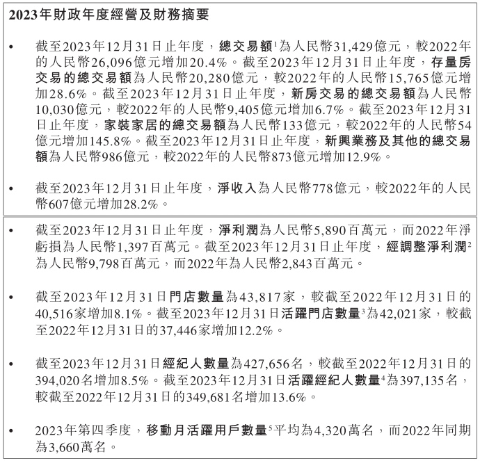 新業務挑起大梁,貝殼2023年各項經營數據大漲