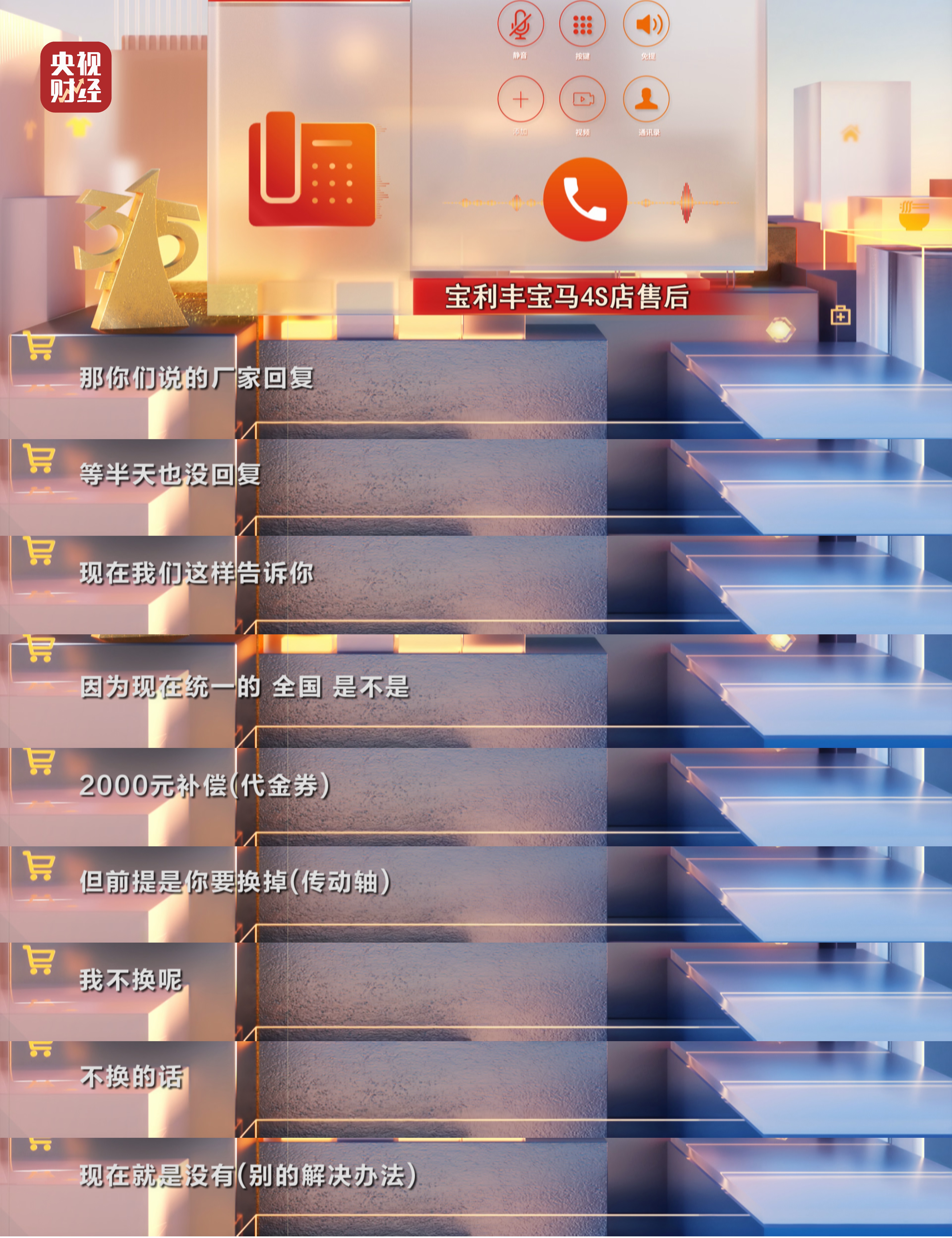 傳動軸,是汽車動力總成中重要部件,剛買的新車就要更換傳動軸,等同於新車要動個“特大手術”,李先生堅決不同意。在與4S店多次交涉無果後,無奈之下,李先生撥通了寶馬廠家的客服電話。客服人員的回答讓李先生的心涼了半截。