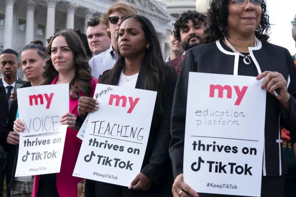Tik Tok的支持者在美國國會外表達反對通過法案(圖片來源:網絡)