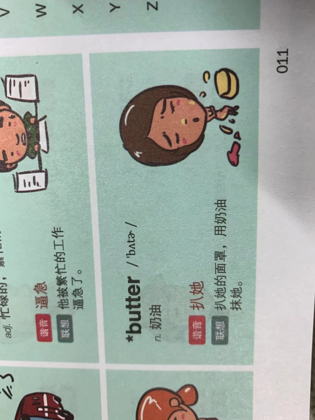 例如,單詞between(在……之間)的聯想記憶方法為“將筆夾在雙臀之間”,care(關心)的聯想記憶方法為“因為關心才K(打)兒子”,December(十二月)被聯想成“這個‘大三八’在12月這麼冷的天還穿迷你裙”,butter(黃油)被聯想成“扒她的面罩,用奶油抹她”,anger(生氣)聯想成“閹割讓他很生氣”……