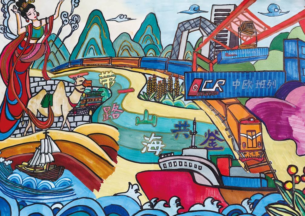 △第三屆“天宮畫展”中展出的作品《一帶一路 山海共鑑》