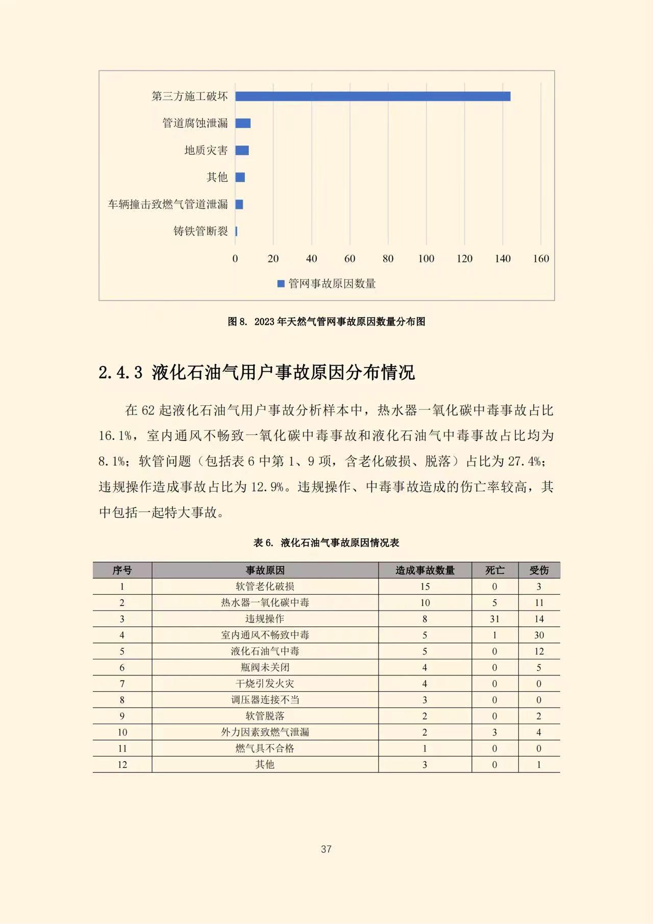 核心期刊《煤氣與熱力》雜誌發佈的一則分析報告(https://mp.weixin.qq.com/s/5Tzql-aNgepTyS9IHx-pNw)顯示,2023年全年共收集到媒體報道的國內(不含港澳台)燃氣事故612起,造成77人死亡,434人受傷。在已核實原因的169起天然氣管網事故分析樣本中,第三方施工破壞引發的事故有144起,佔比85.2%。
