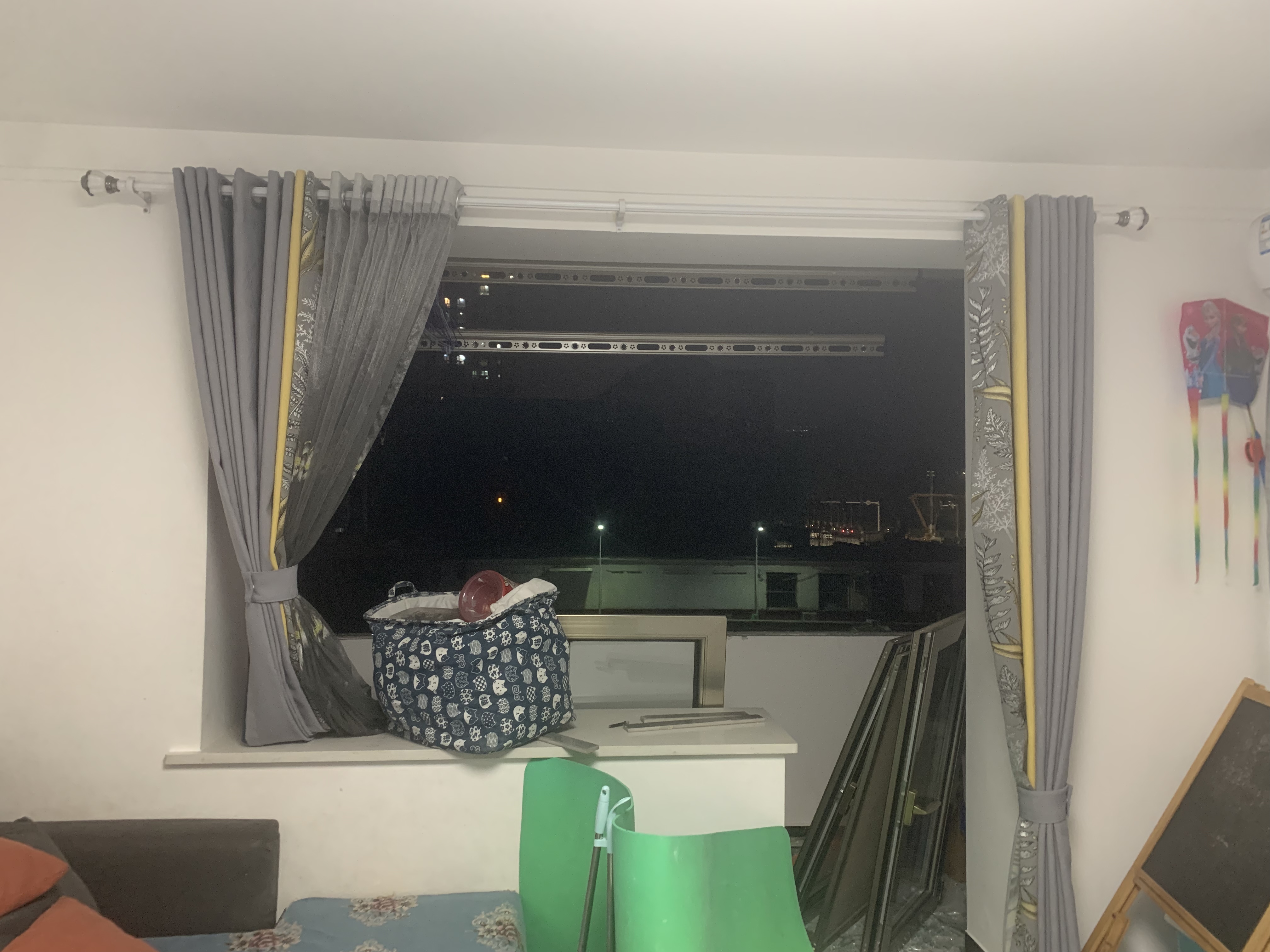 羅志家客廳朝南的窗户震碎,有施工隊來拆除了窗框