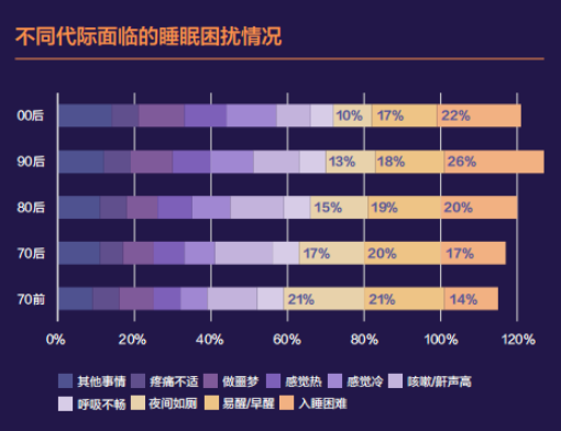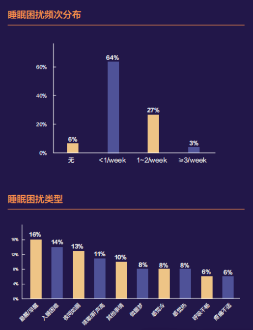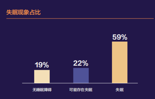 失眠問題不容樂觀,59%的人存在失眠症狀,完全無睡眠障礙人羣僅佔19%。