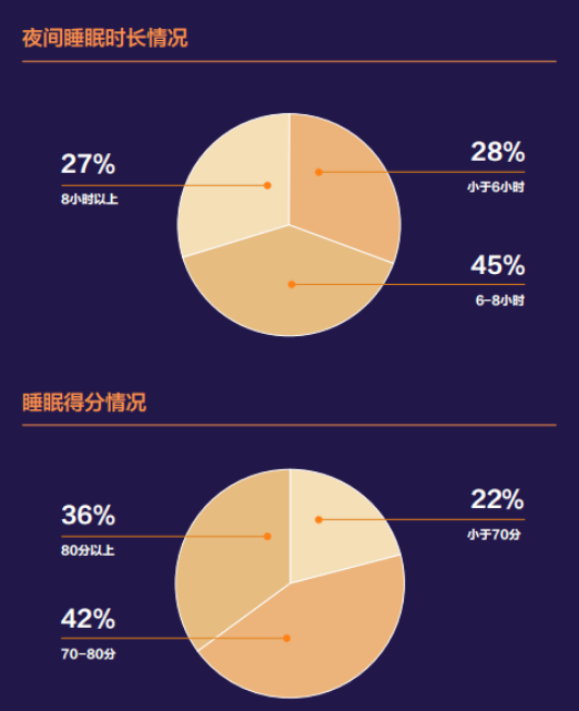 白皮書顯示,居民整體睡眠質量欠佳,平均在零點後入睡(00:01),夜間睡眠時長普遍偏短(6.75小時)。平均夜間清次數不多(1.4次),但總體睡眠得分為75分,還有較大提升空間。