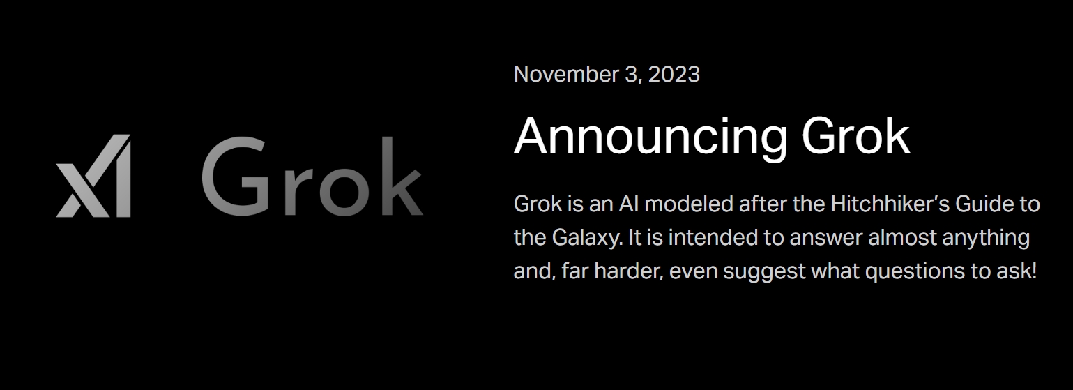 2023年11月,xAI官網發佈文章,公佈了Grok的詳細進展。