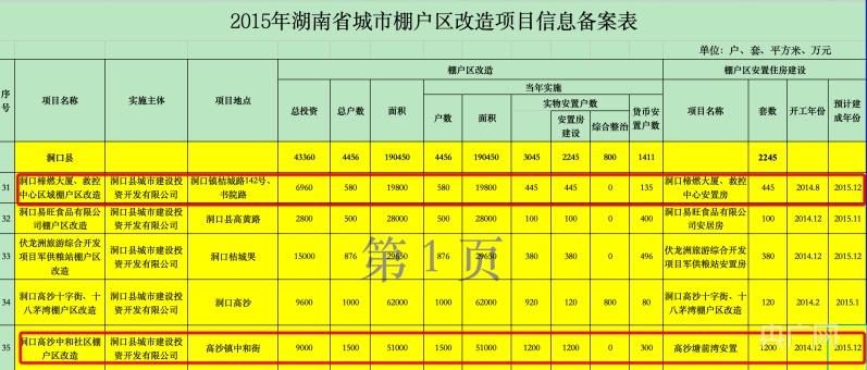 2015年湖南省城市棚户區改造項目信息備案表(來自湖南省住建廳官網)