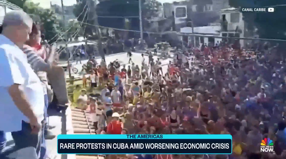 美國“全國廣播公司”(NBC)稱古巴發生了“罕見的抗議”(rare protests)