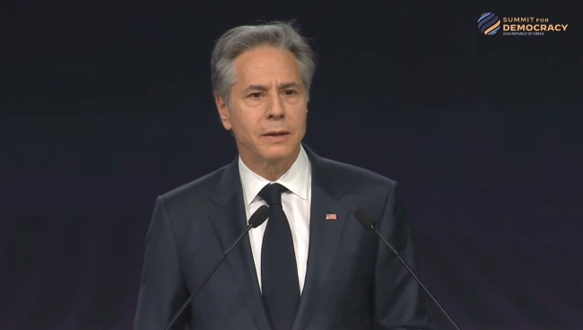 3月18日,布林肯在首爾“民主峯會”上發表講話