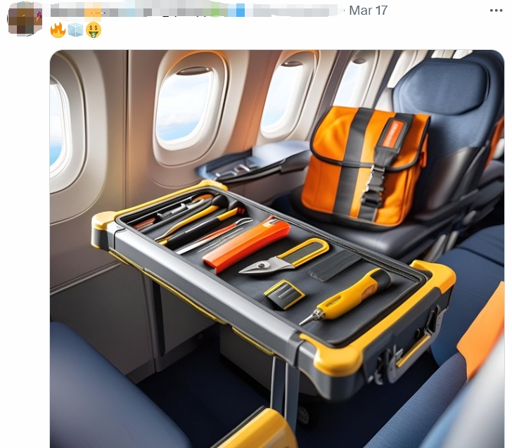 圖中文字稱,由波音飛機執飛的航班現在允許乘客攜帶螺絲刀和鑽機登機,以便協助維修。