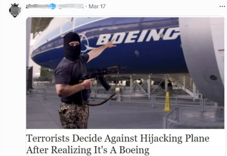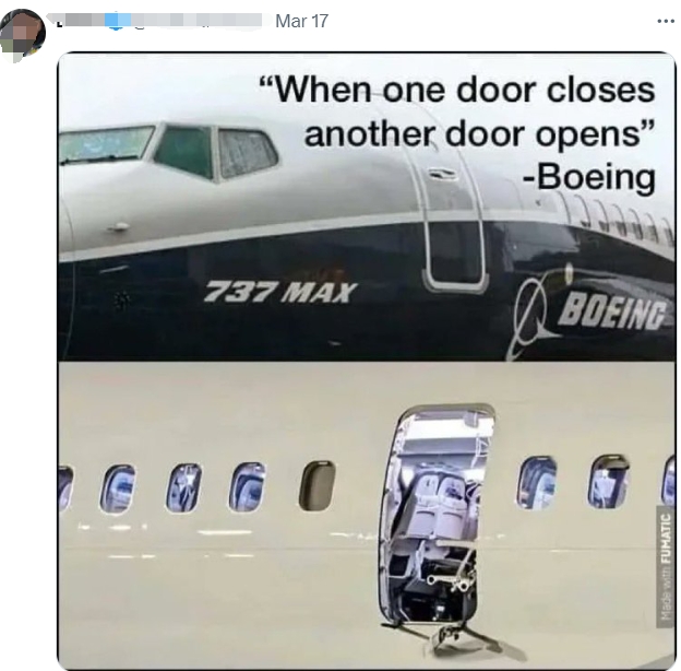 馬斯克嘲諷波音飛機質量堪憂的梗圖火了,點贊超37.5萬