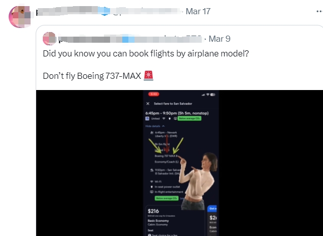 還有熱心網友手把手教學:如何在訂機票時避開波音737 Max。