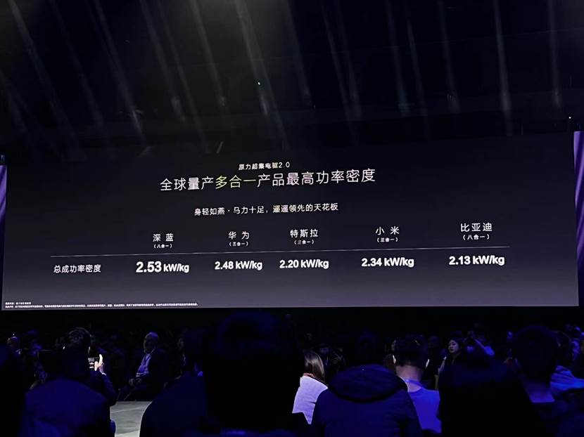 在高功率密度方面,原力超級電驅2.0則成為全球量產多合一產品最高功率密度(2.53kW/kg),超越了華為、特斯拉、小米等品牌的產品。