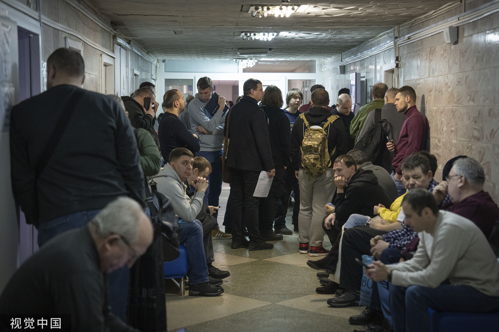 當地時間2月8日,烏克蘭基輔,新兵在市立醫院等待通過體檢 圖源:視覺中國